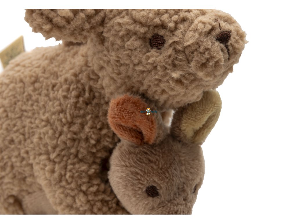 Aká rozkošná je táto hračka s tematikou kengury! Mäkká kengura bezpečne nosí svoje bábätko vo vrecku, pevne pripevnené. Spoločne tvoria útulné duo, ktoré poskytuje teplo a pohodlie na cestách. Vešiak je vyrobený zo super mäkkého koralového flísu a jemných detailov, takže je nielen roztomilý, ale aj príjemný na dotyk. Vďaka praktickému krúžku môžete hračku jednoducho pripevniť na kočík, či autosedačku, aby vaše dieťatko malo túto milú kenguru vždy po ruke.